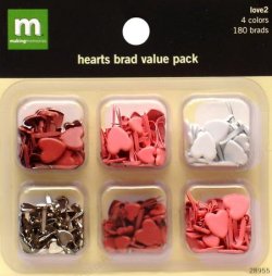 Making Memories Hearts Brad Value Pack 180 Count, 4 colors Cranberry, Capri Color 20 med, 40 mini White, Silver Color 10 med, 20 mini MSRP - $4.99